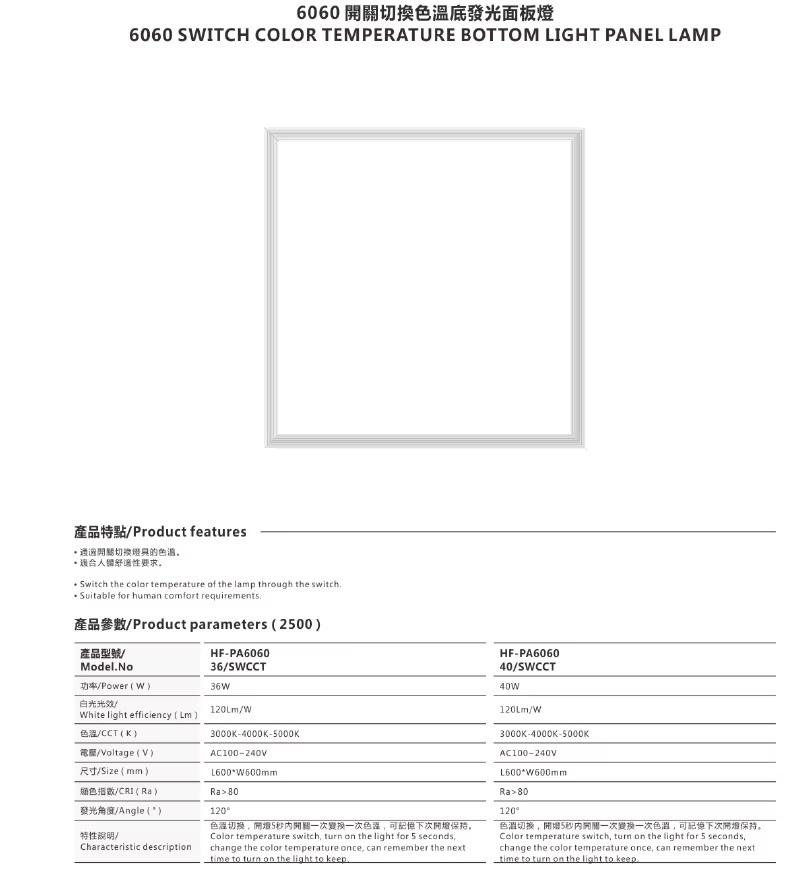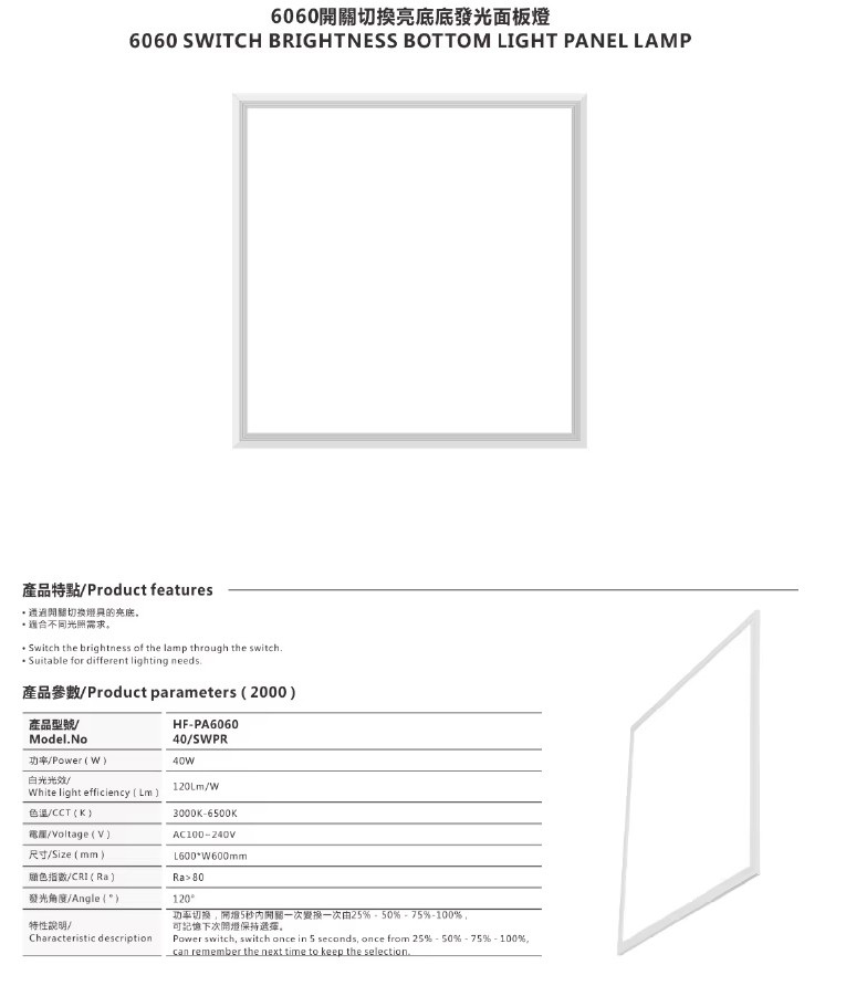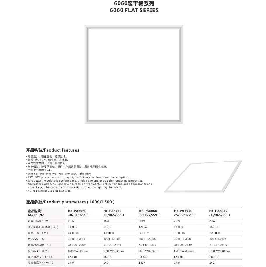 Large size flat led panels, 600*600MM Series